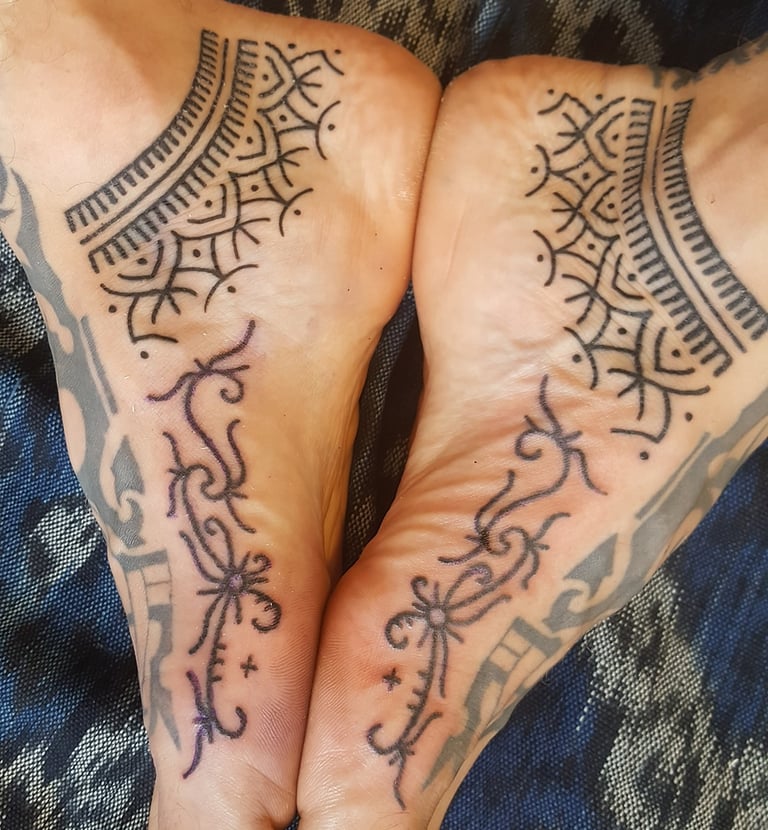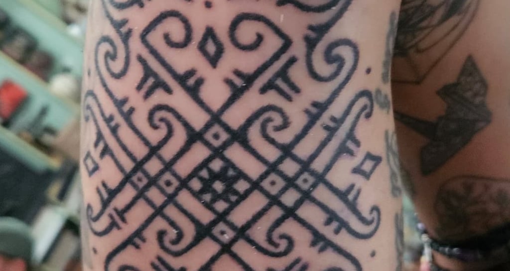 Hand-tapped Borneo tattoos from Tawau artisan.