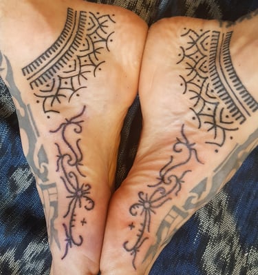 Experienced in both handpoking and machine tattoos, specializing in authentic Borneo handtapping techniques.